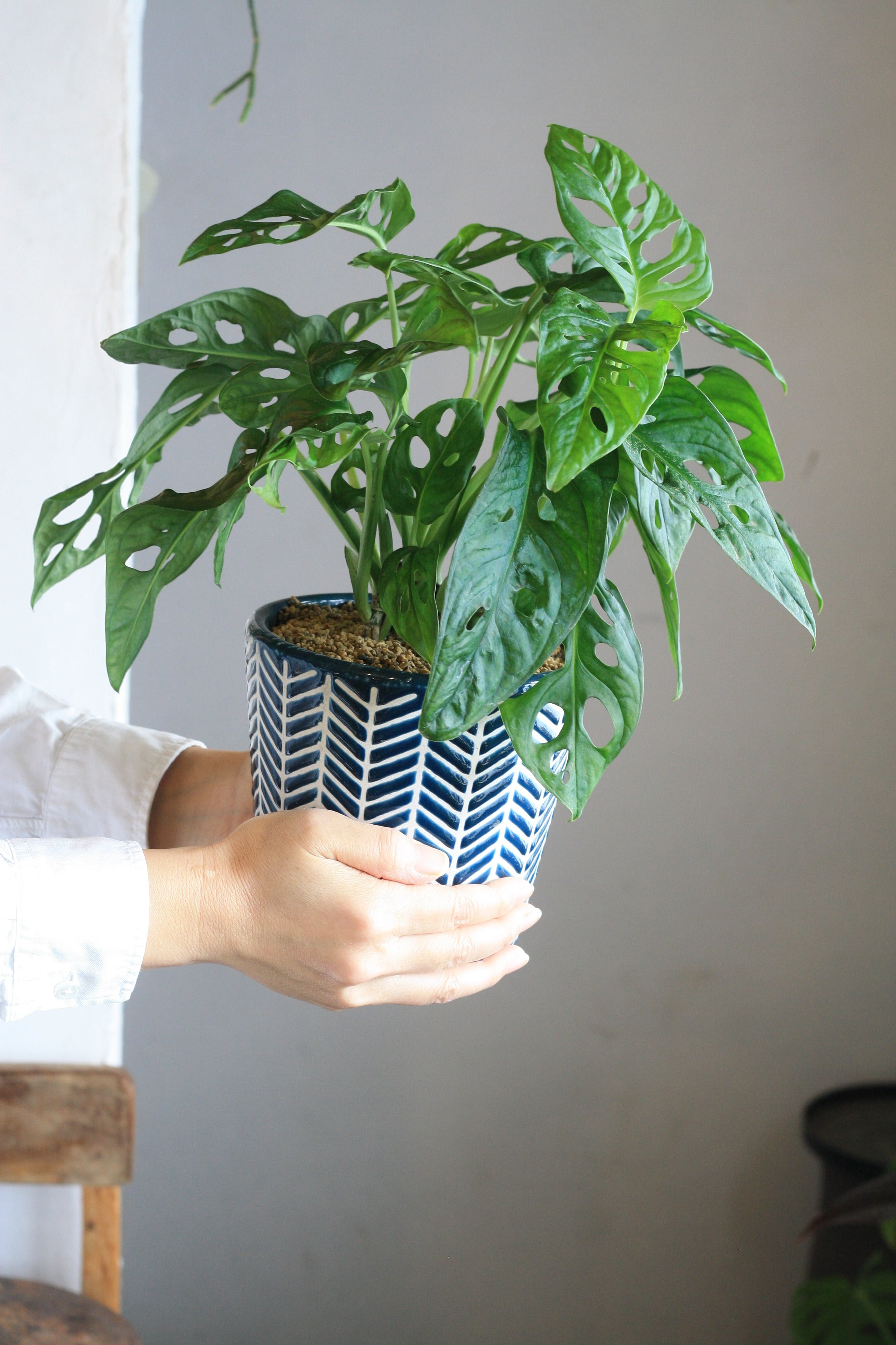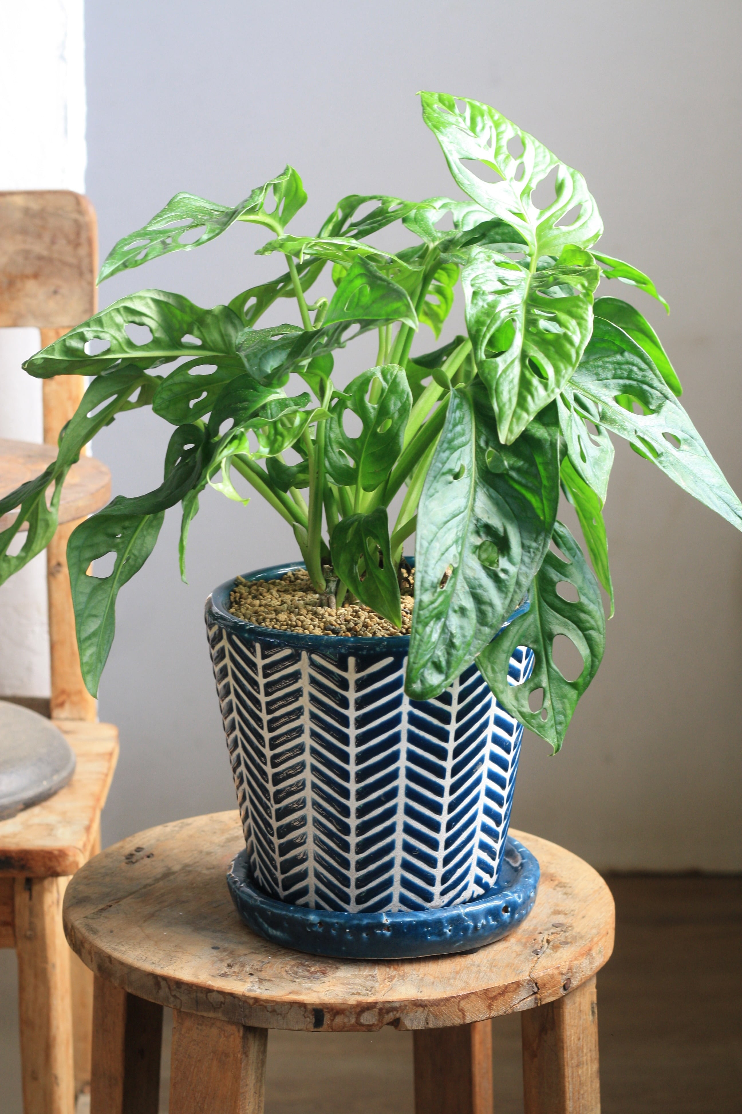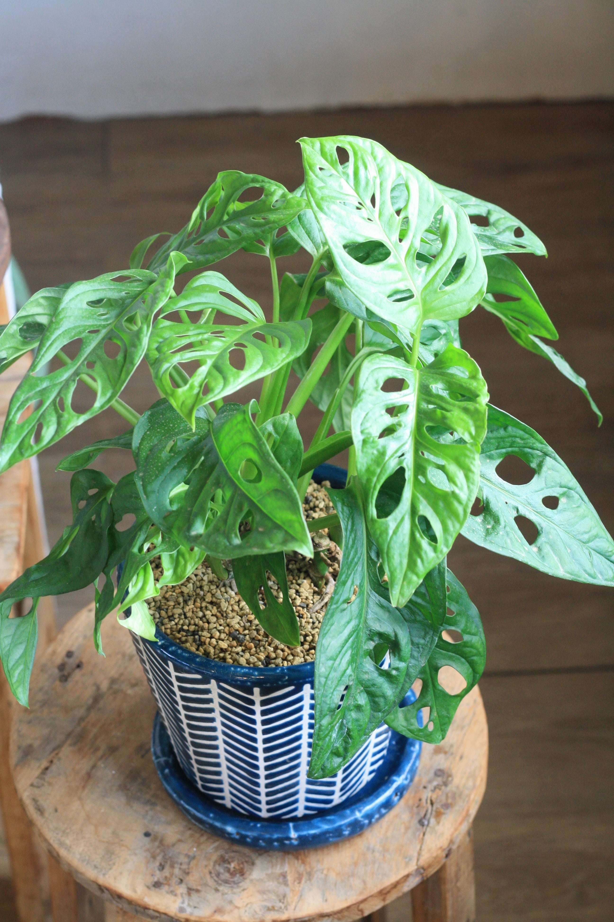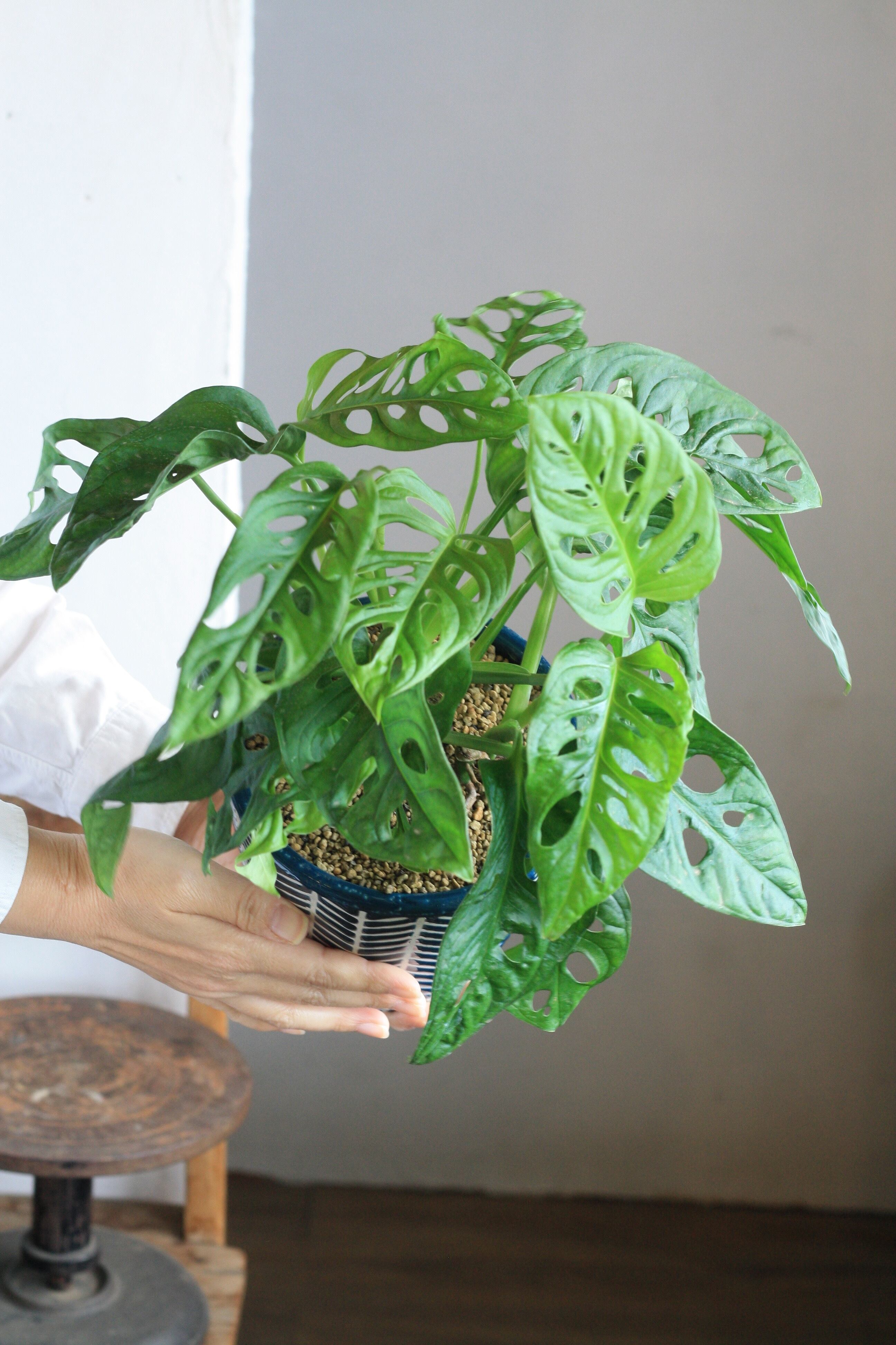 モンステラの仲間で、穴がたくさんあいているユニークな葉が特徴です。