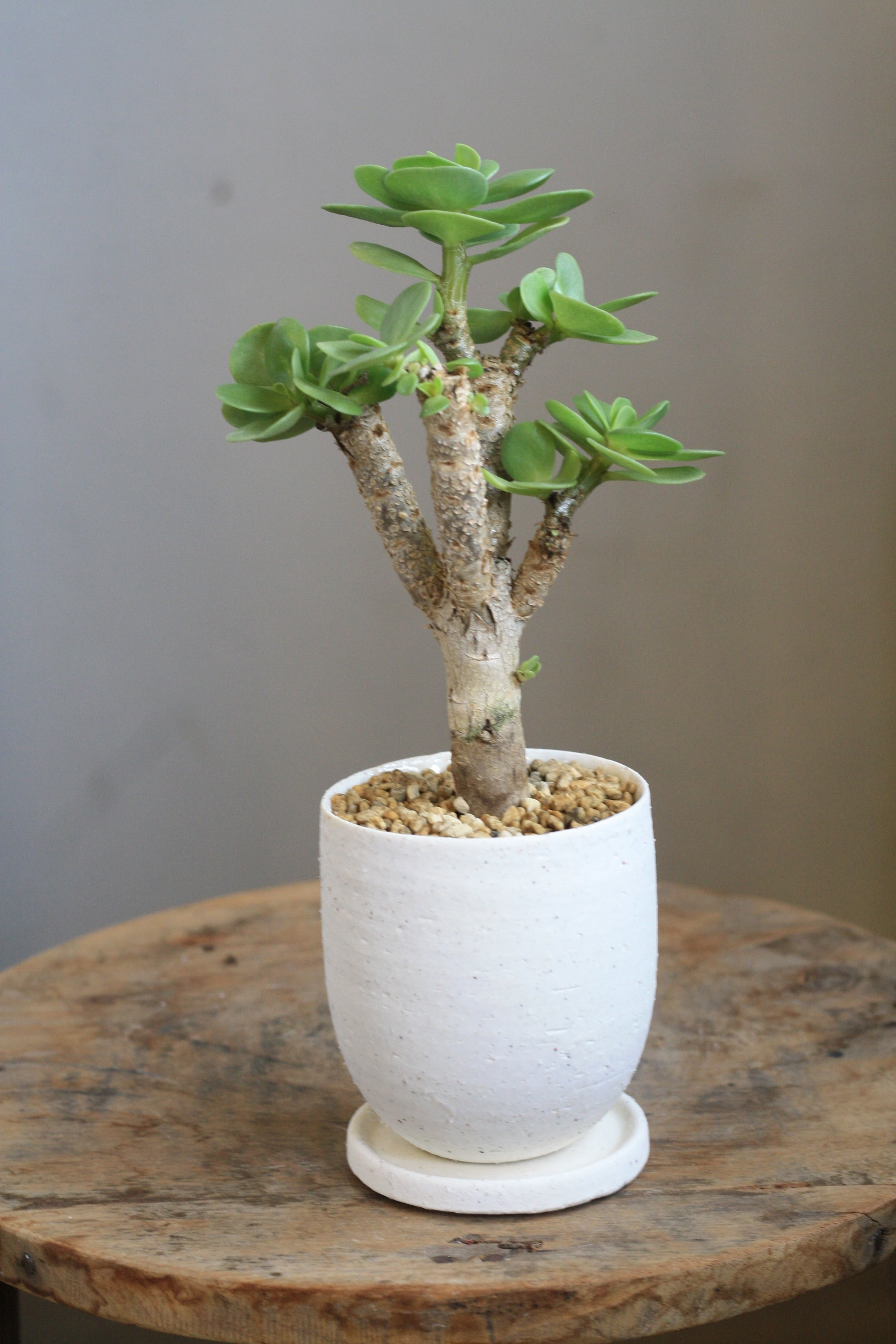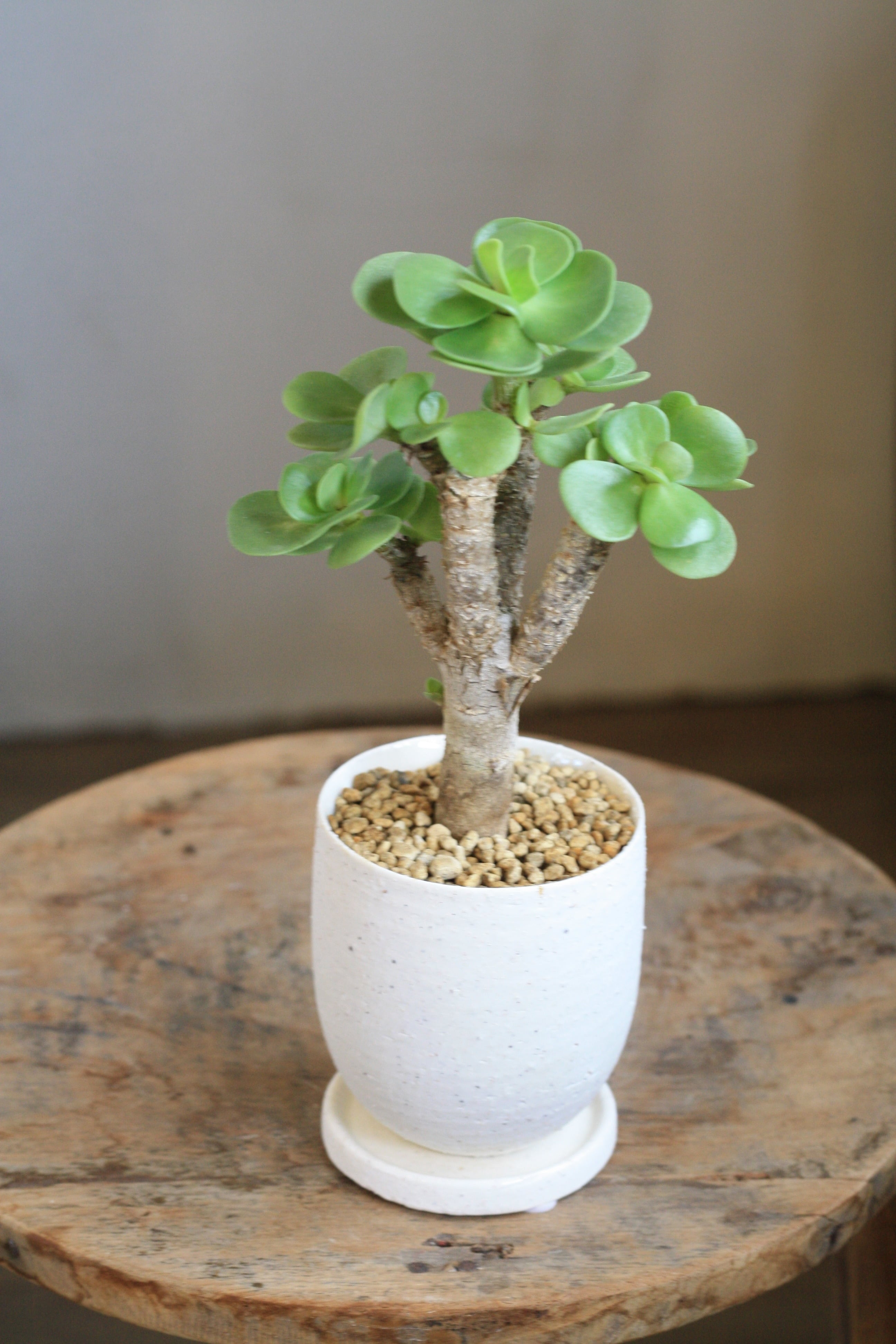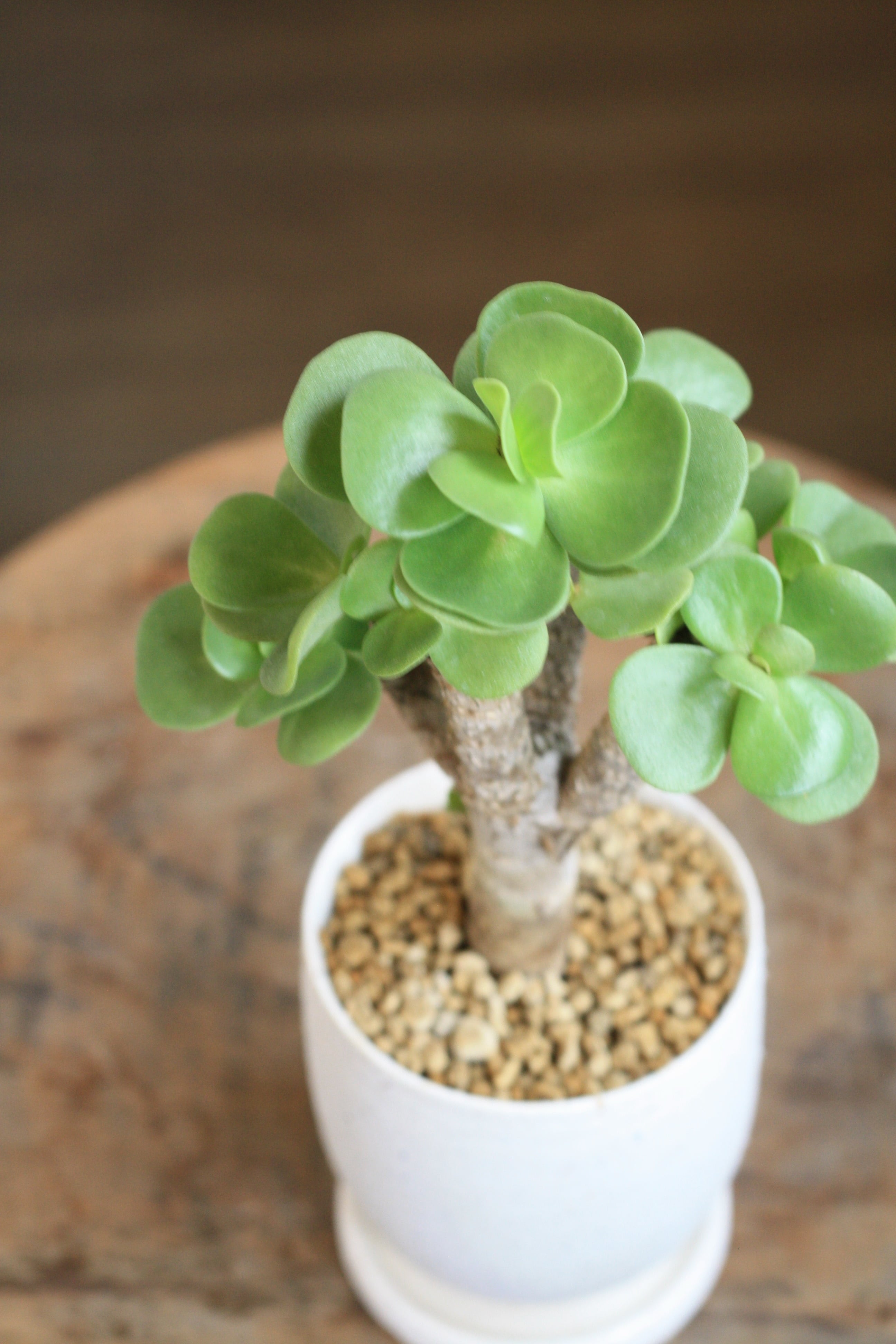 木質化した幹に平たい丸い葉がつきます。