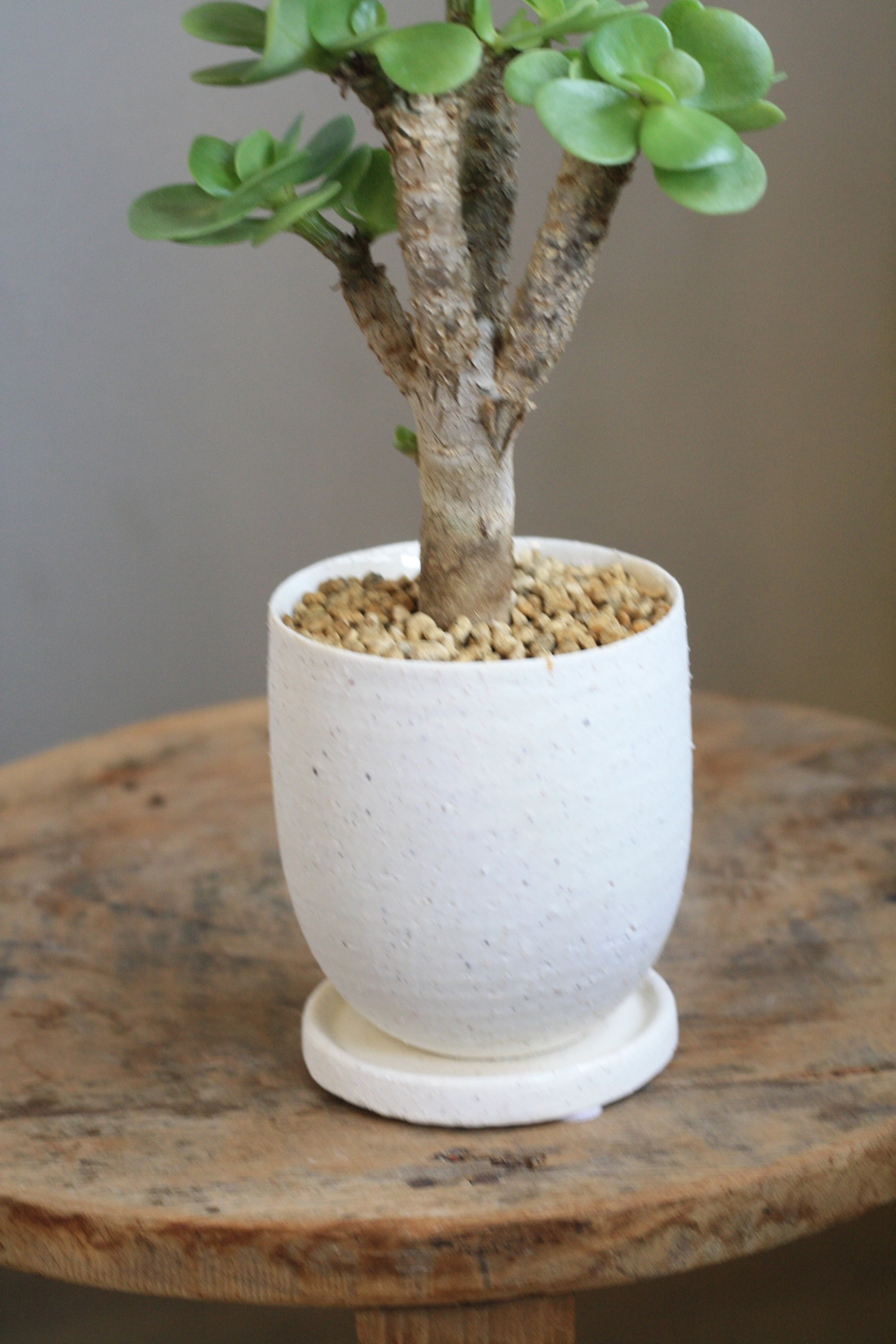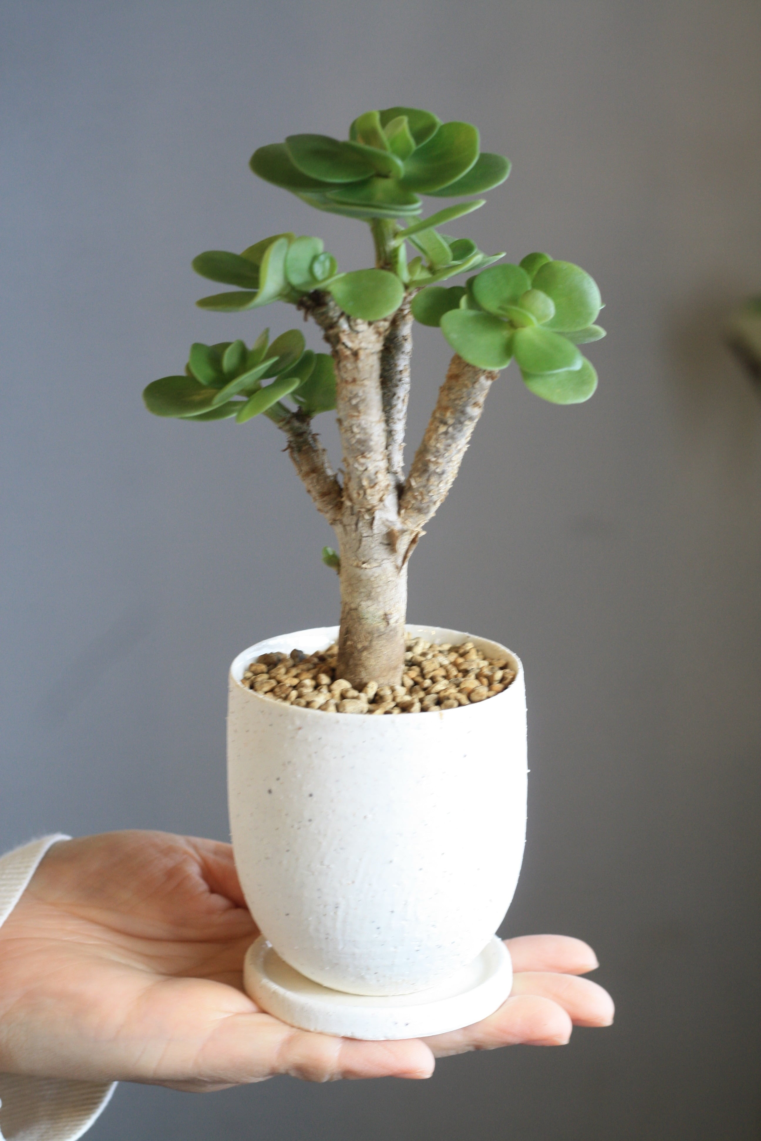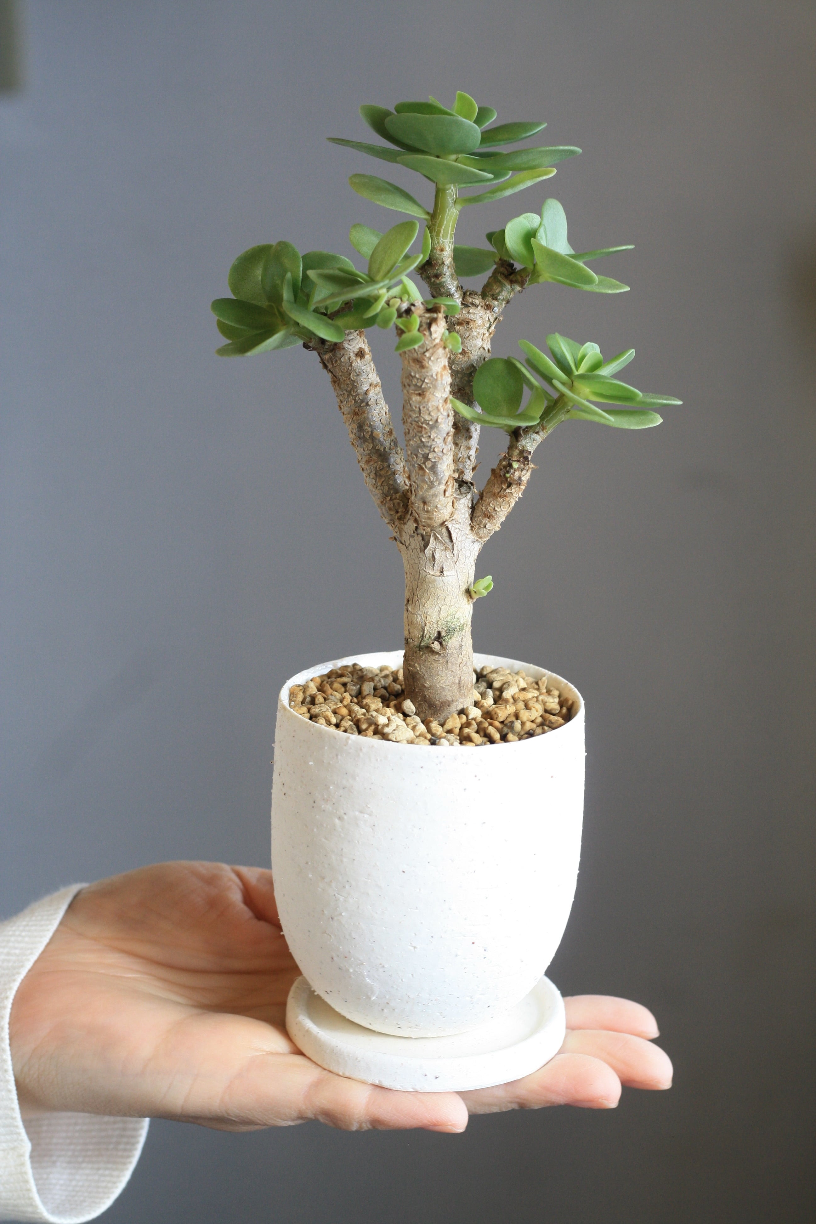木質化した幹に平たい丸い葉がつきます。