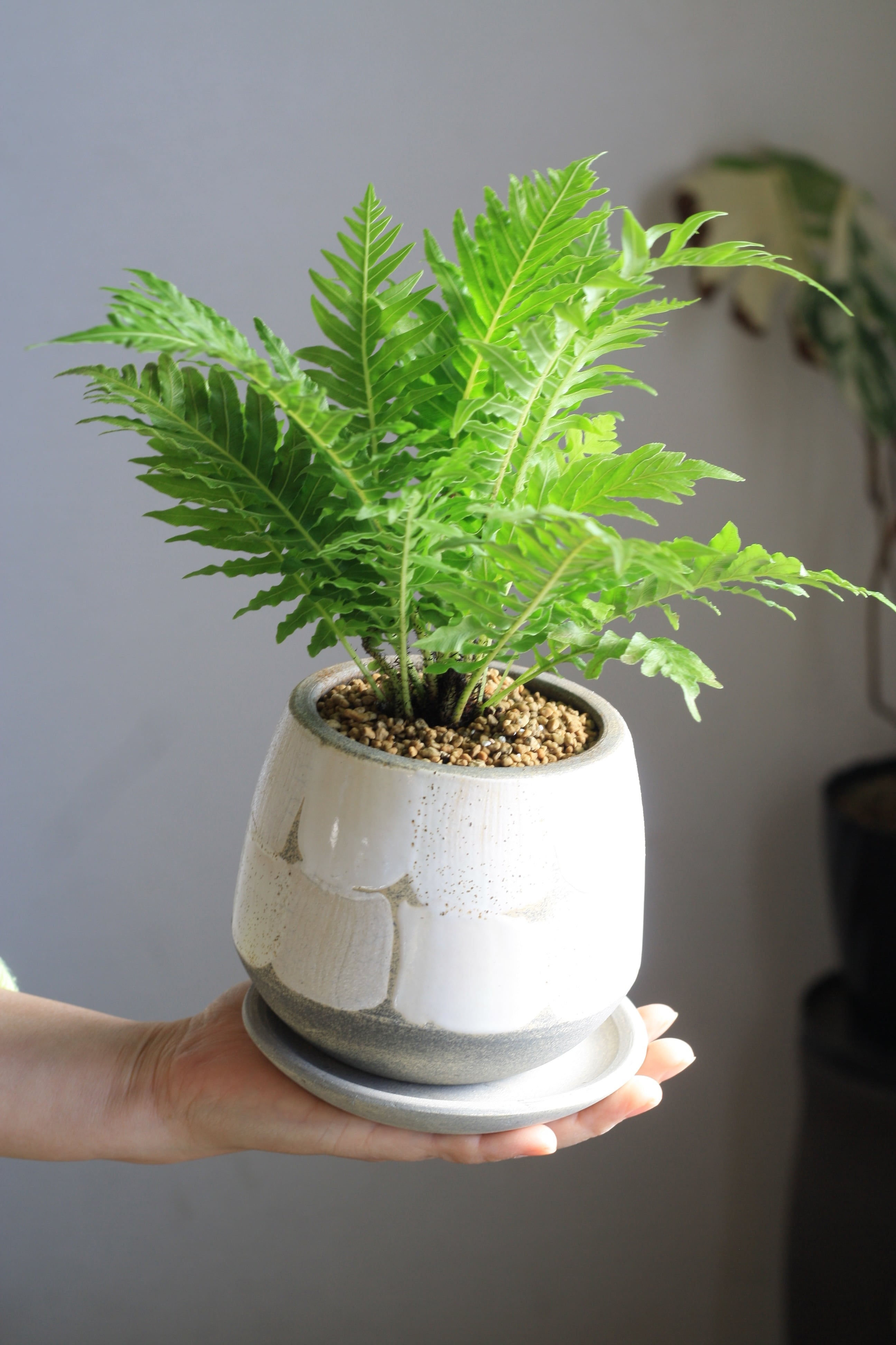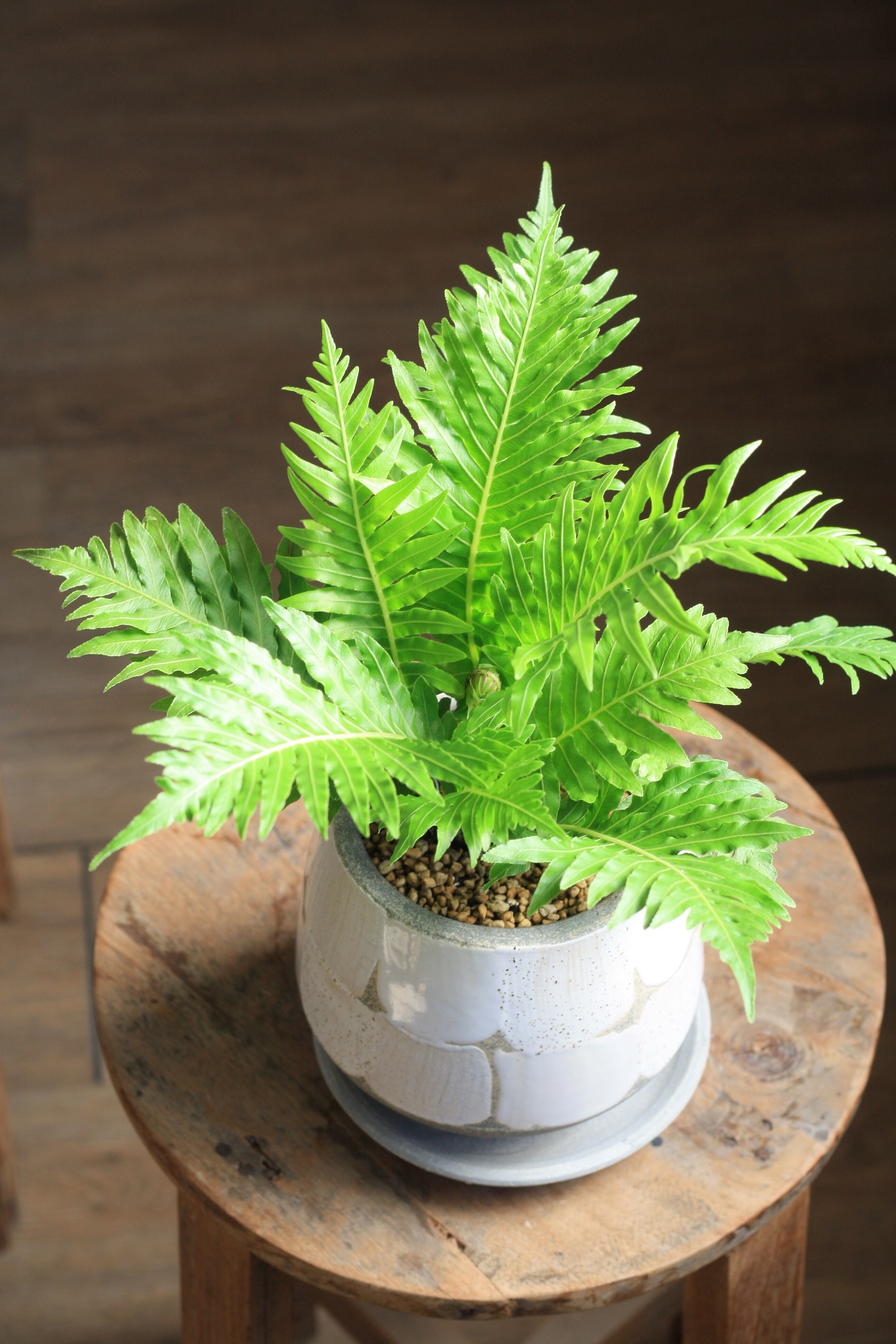 シダ植物なので耐陰性があり窓から離れた場所でも育ちます。