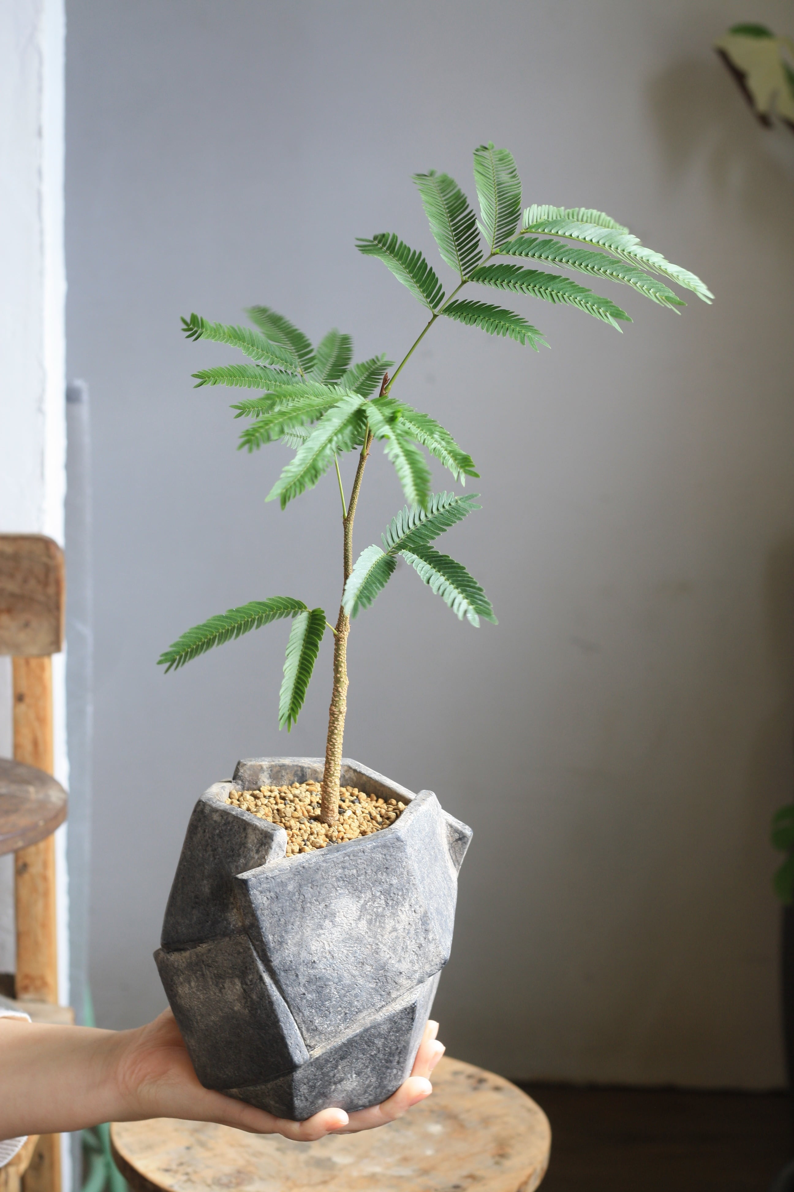 エバーフレッシュは夜になると葉を閉じる植物です。眠っているようでとてもかわいいです♪