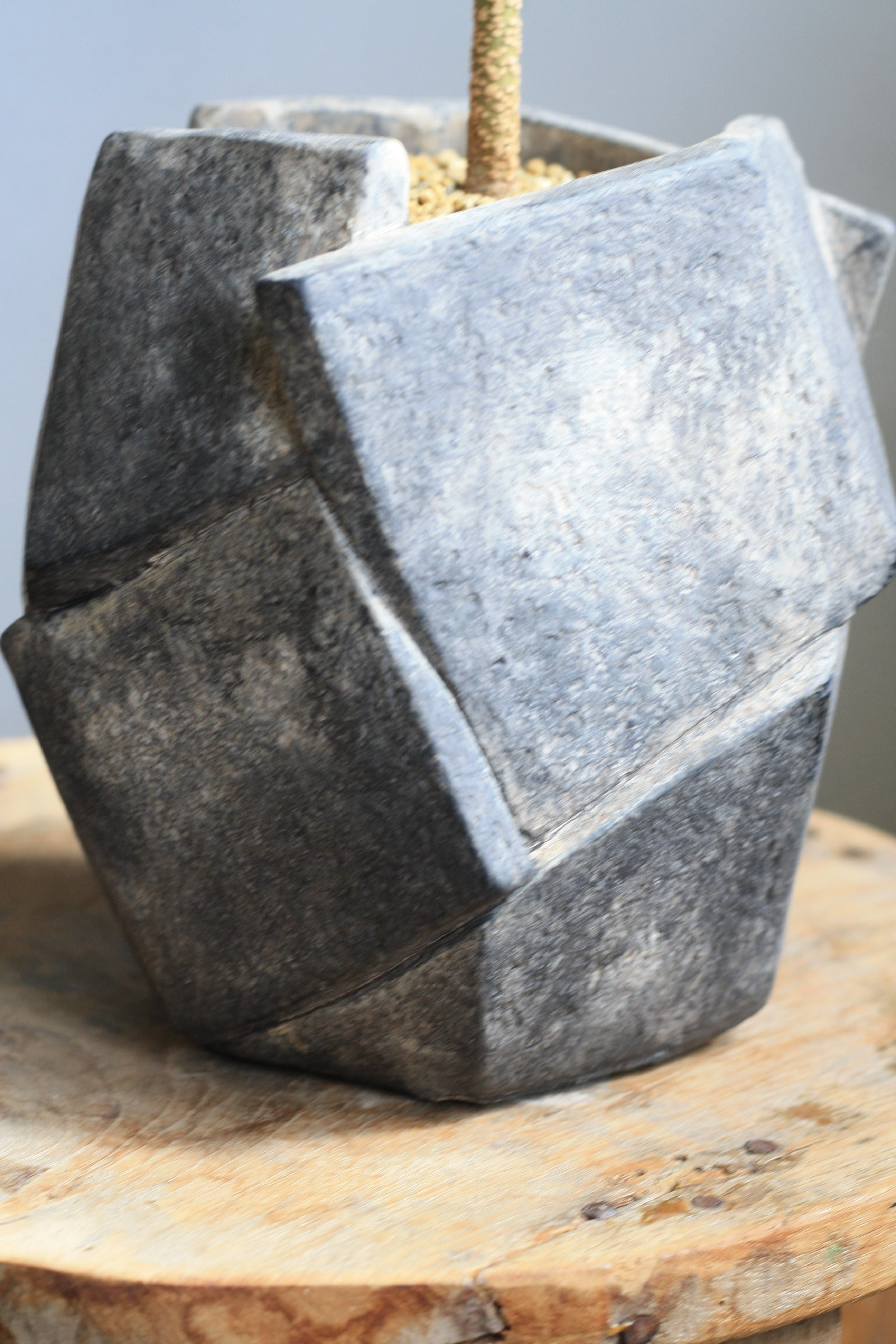 土の表面に化粧石を敷いています。